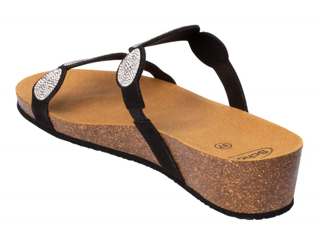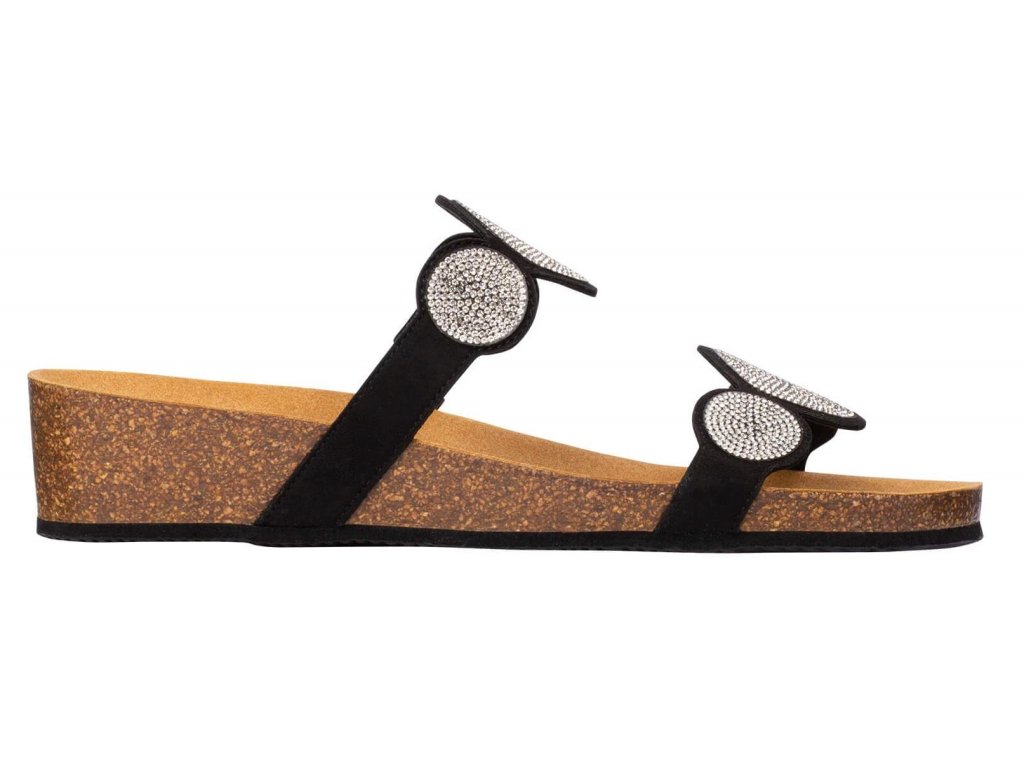 Jedná se o pantofle na klínku ozdobené zirkony s korkovým klínkem a semišovou stélkou.