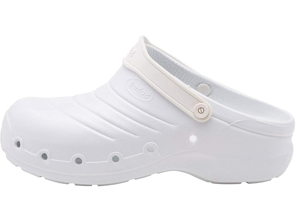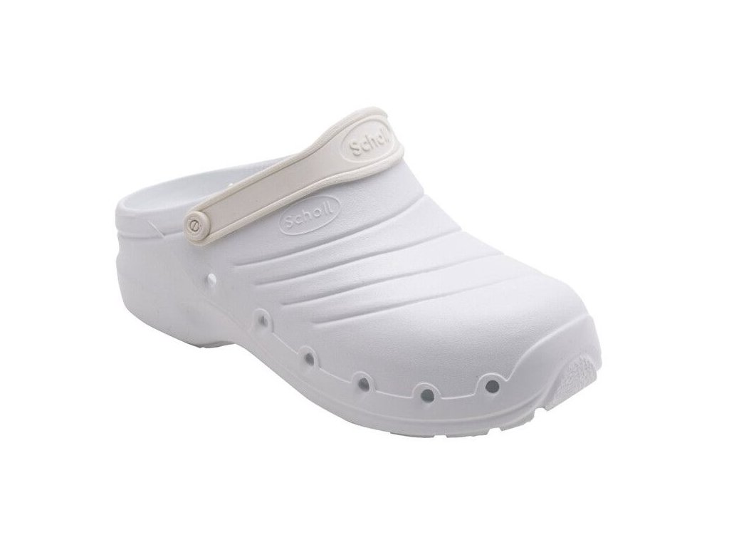 Pokud hledáte kvalitu, pohodlí a zároveň lehkost, pak je tím nejlepším řešením pracovní obuv Scholl Work Light . Obuv je vyrobena z materiálu EVA, vyznačuje se mimořádnou lehkostí, díky postarnním perforacím je prodyšná a má anatomickou stélku. Pro větší bezepčnost lze pásek kolem nártu otočit a nosit za patou. Tento model pracovní obuvi je vhodný pro zdravotníky, číšníky, kuchaře atd. Obuv je vybavena protiskluzovou podrážkou a je antistatická.
